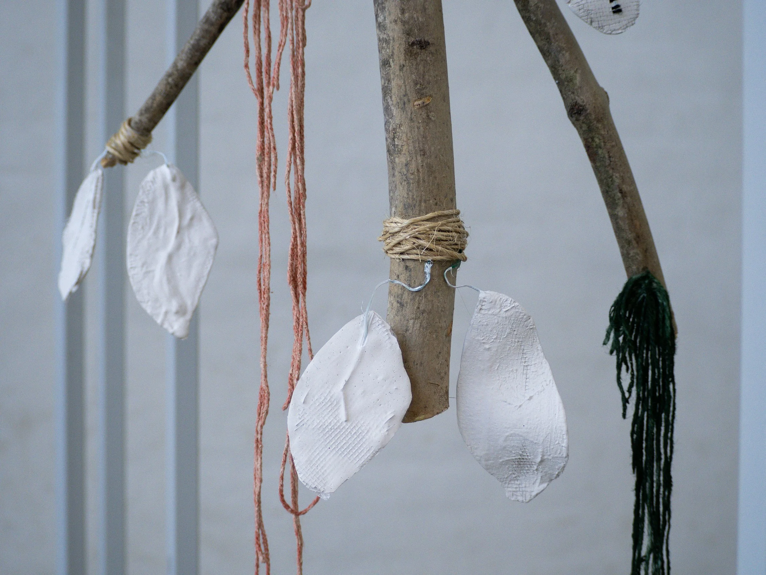 Suxeita a materiais que atopo na natureza e facilmente no meu día a día, elaboro as esculturas, vencelladas ao espazo/ territorio no que se desenvolve a obra.