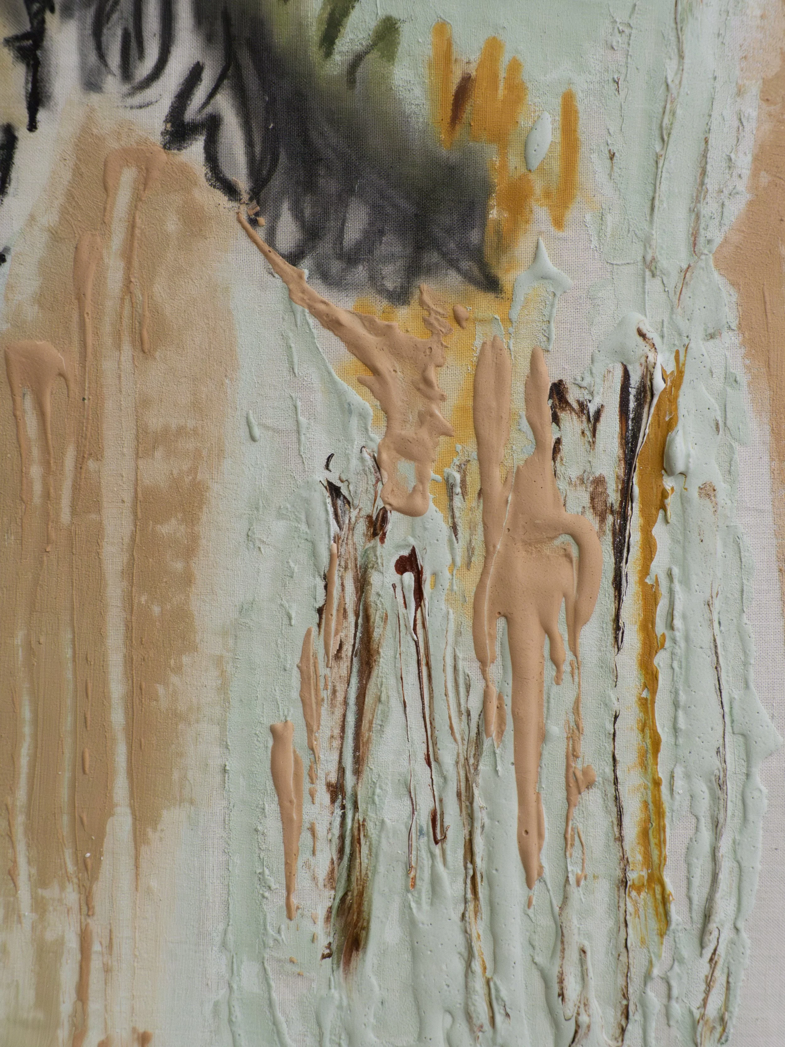 Acrylic, graphite, ink, filler… materials blend together in this multidisciplinary exploration.