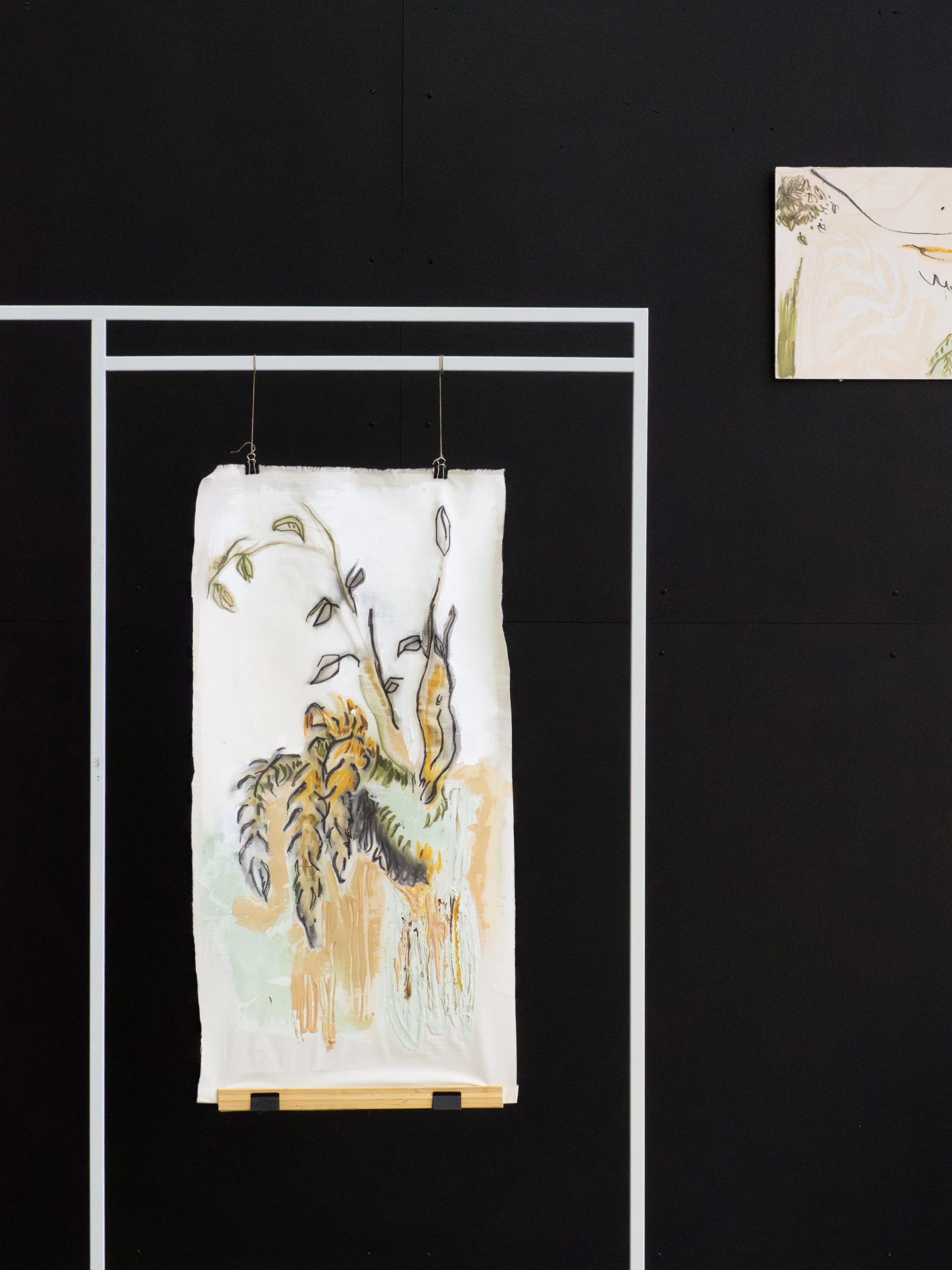 Like in a forest, there is figuration and abstraction. Concrete forms come together to create nearly abstract compositions, where textures and color combinations take center stage. If you look closely you might begin to recognize certain elements: a familiar plant, the shape of a leaf, the outline of a tree.